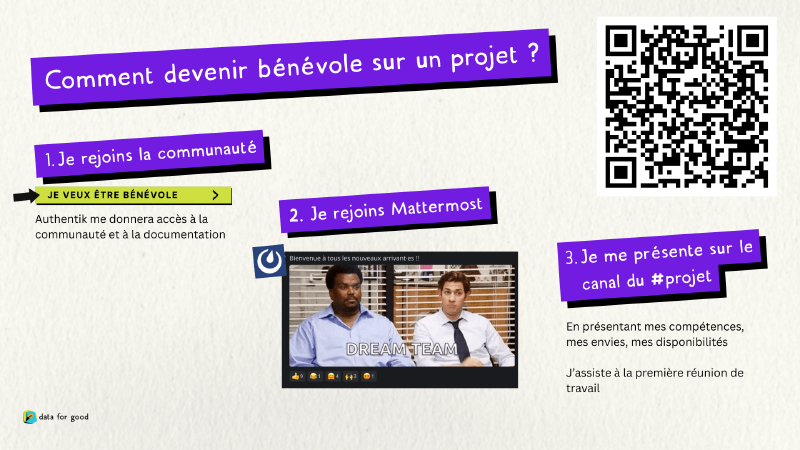 Pour un projet valorisant, que ce soit dans le cadre d’un CV ou d’une fin de formation, il est possible de s’inscrire sur le site de Data for Good et de rejoindre le réseau. La plateforme recense les projets toujours en activité qui recherchent des bénévoles ; les référents peuvent être contactés afin de construire une collaboration qui réponde à la fois aux besoins de l’association et aux objectifs pédagogiques.
