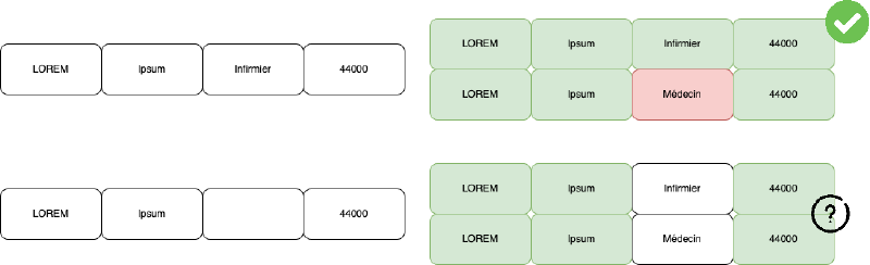 Une fois corrigés les comptes avec plusieurs RPPS, il reste ceux qui n’en ont aucun. Nous utilisons à nouveau le répertoire des professionnels de santé pour retrouver une personne correspondant aux informations de la déclaration. Contrairement à l’étape précédente, le fuzzy matching est exclu : un nom et un prénom proches dans le répertoire produiraient trop de faux positifs. La méthode repose donc sur du matching exact, via une série de règles encadrées.