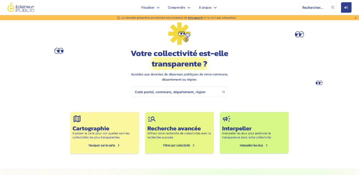 Pour réaliser ce projet, les associations Anticor et Transparency International France se sont associées à Data For Good afin de mobiliser des bénévoles. En 3 mois, des experts data bénévoles ont créé la plateforme Éclaireur Public. Ce projet a combiné de la récupération de données, de la normalisation des sources et du développement web pour proposer une cartographie de niveaux de publication.